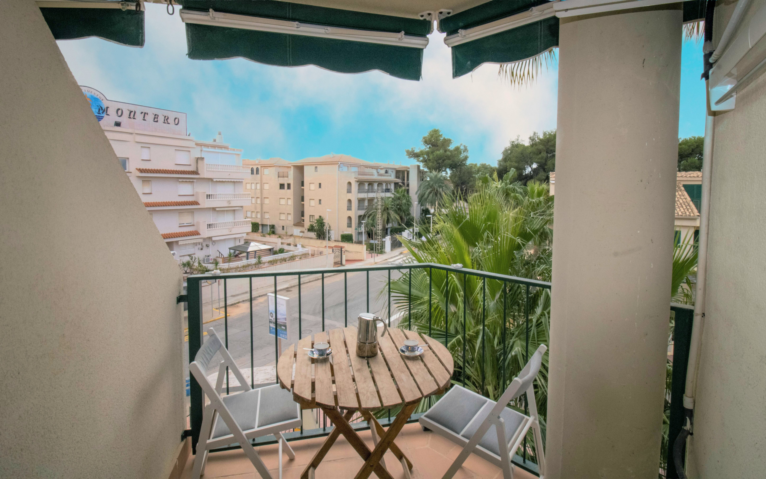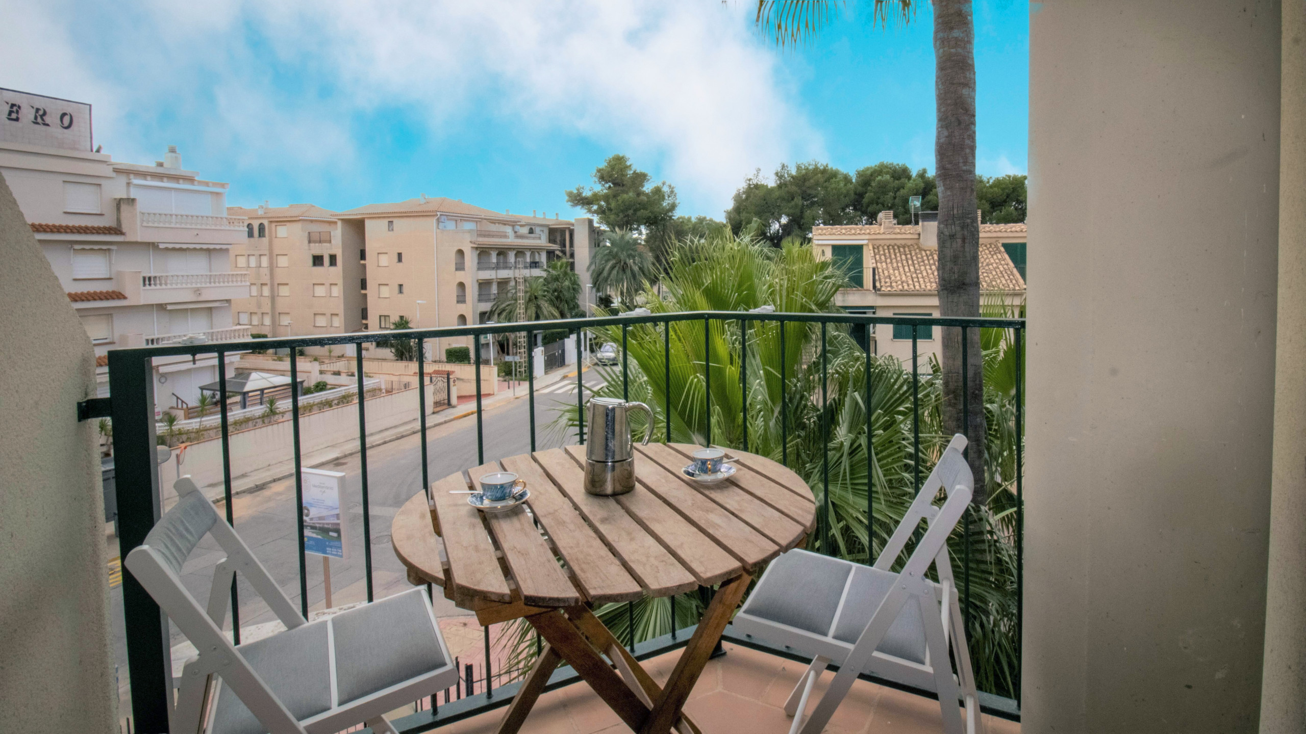 La terraza, con vistas parciales al mar , es pequeña pero perfecta para 4 personas.