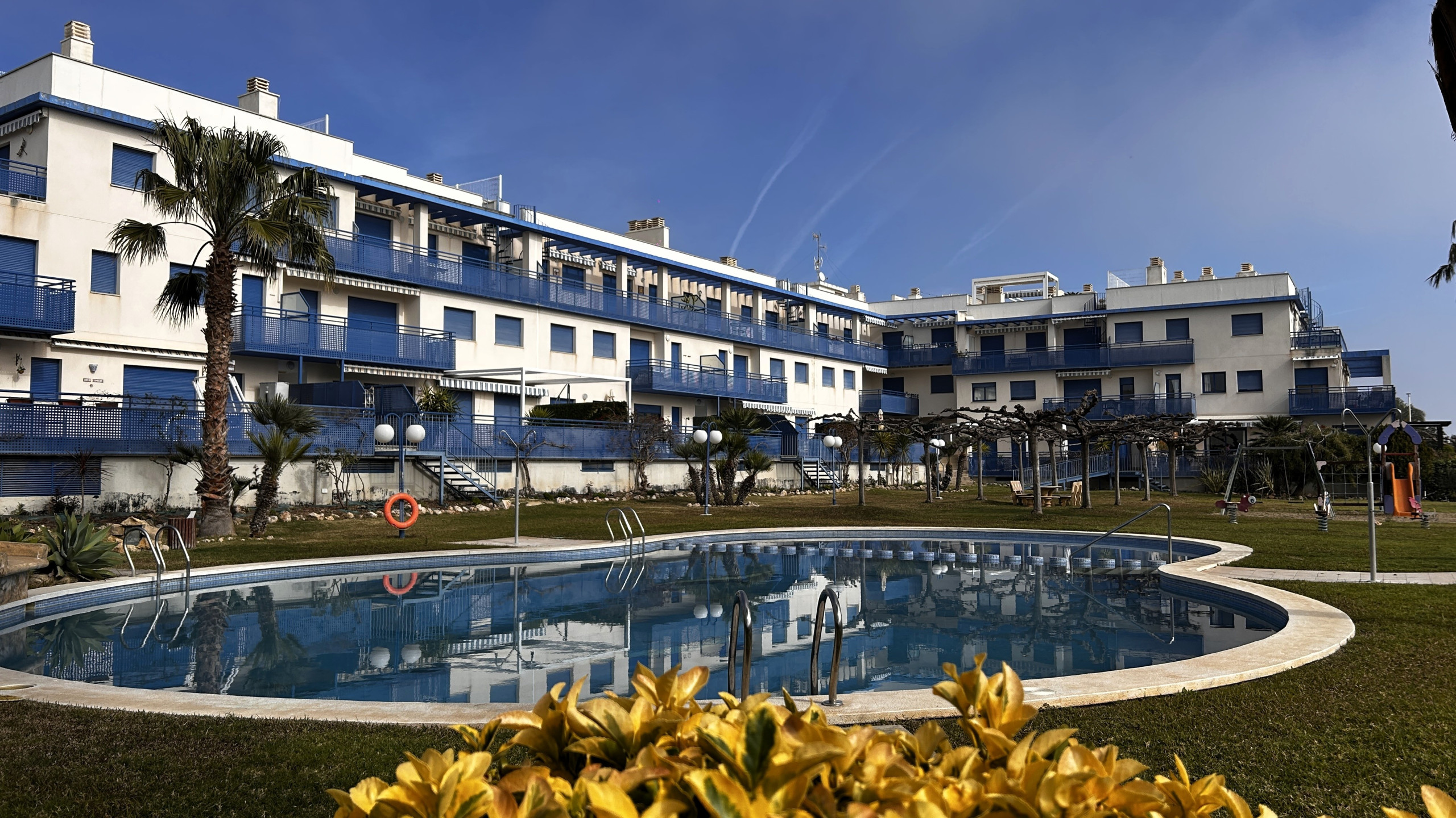 Dispone de ascensor, jardín, parcela vallada, 10 m² de terraza, zona infantil, calefacción-bomba de calor, aire acondicionado en el salón y algunos dormitorios, piscina comunitaria, parking cubierto en el mismo edificio y televisión.