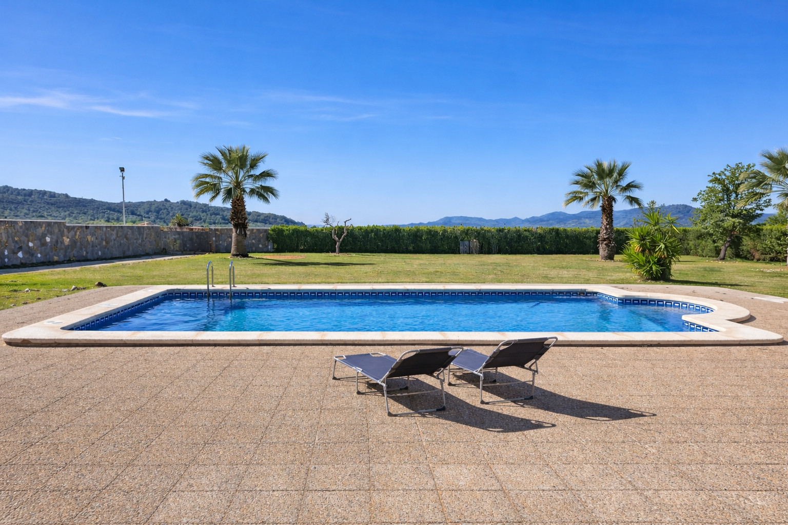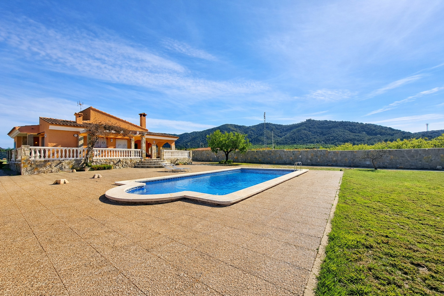The accommodation is equipped with the following items: garden, garden furniture, fenced garden, terrace, washing machine, barbecue, fireplace, iron, internet (Wi-Fi), electric heating, private swimming pool, open-air parking the same building, 3 fans, 1 TV, satellite tv (Languages: Spanish), radio.