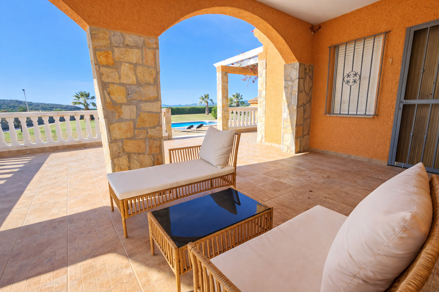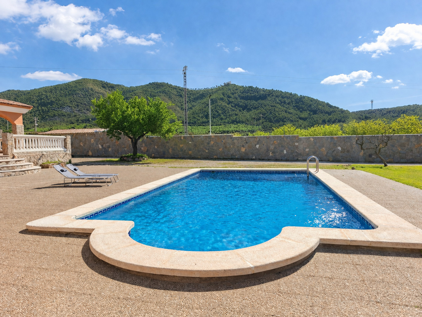 Elle dispose de jardin, mobilier de jardin, clôture, terrasse, lave-linge, barbecue, cheminée, fer à repasser, accès internet (wifi), chauffage électrique, piscine privée, parking extérieur même bâtiment, 3 ventilateurs, 1 Télévision, tv satellite (Langues: Espagnol), radio.